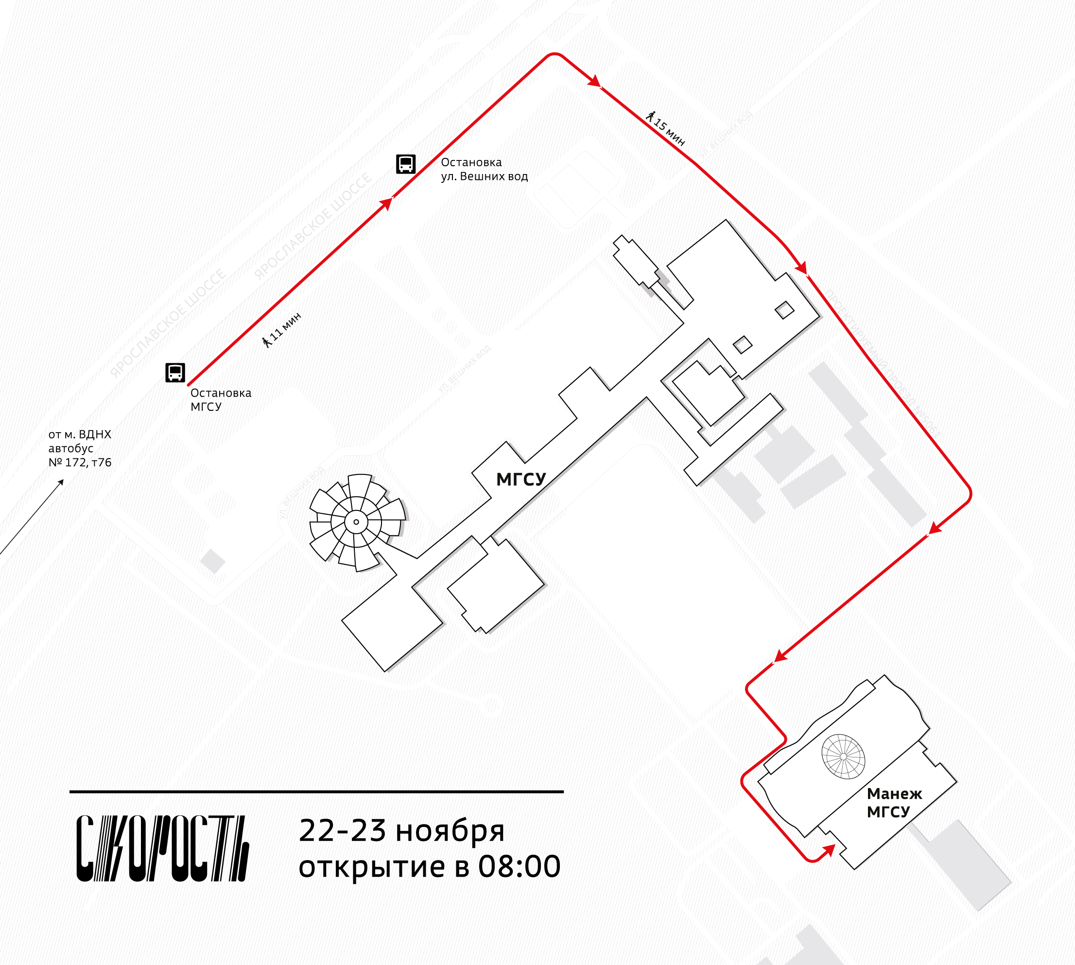 Пожалуйста, приезжайте в манеж на общественном транспорте - доступ на территорию НИУ МГСУ на личном автомобиле будет невозможен!